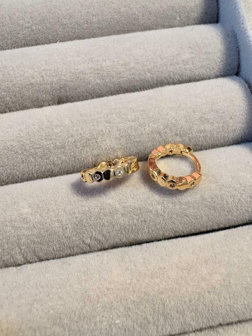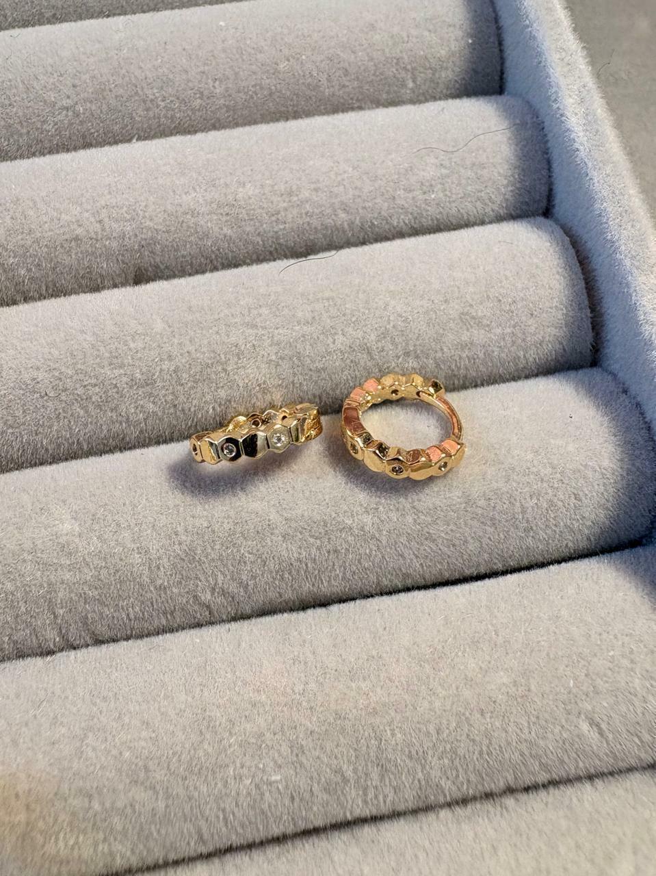 Design: Redonda com pequenos hexágonos cravejados em micro zircônia