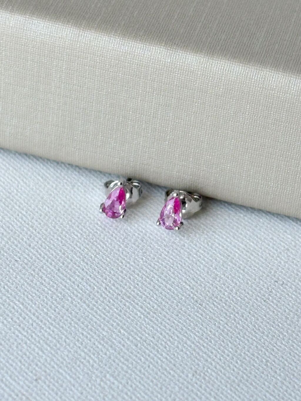 Brinco de Pino Gota Rosa Pink PP Banhado a Ródio Branco