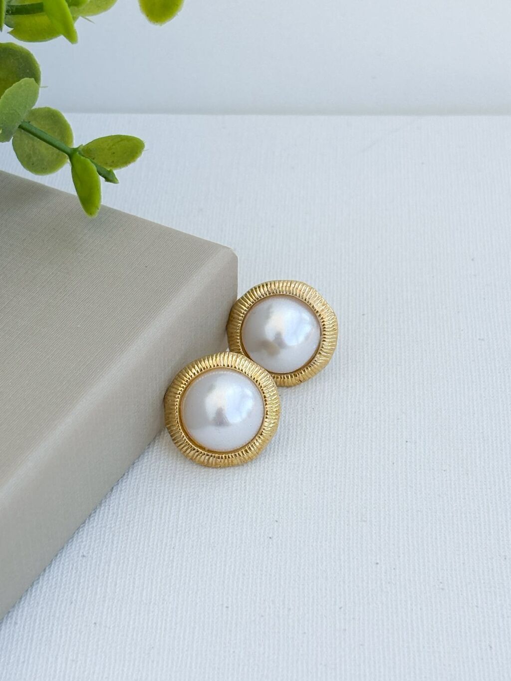 Brinco de Pino Pérola Central com Borda Banhado a Ouro 18k