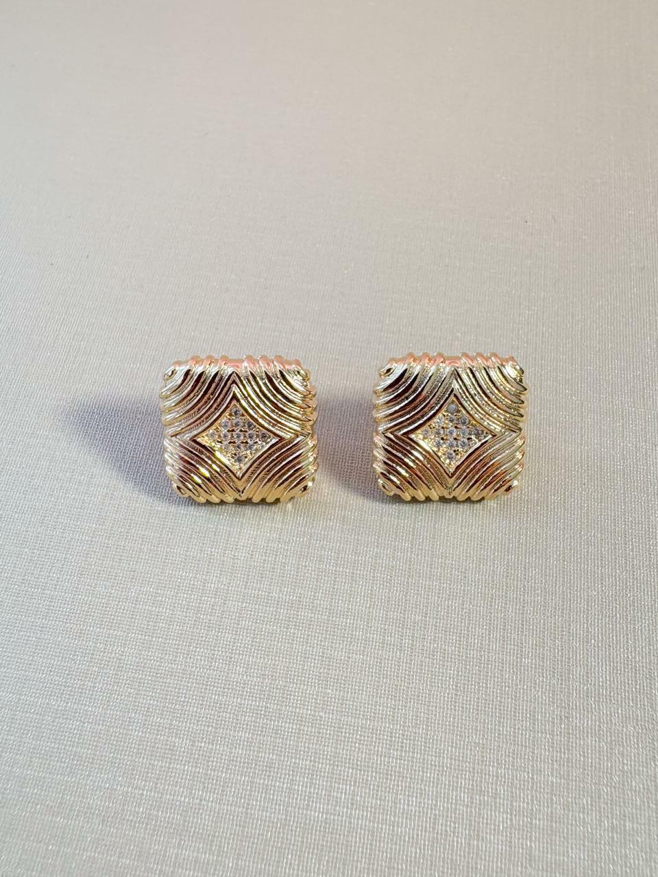 Brinco de Pino Quadrado com Meio Cravejado Banhado a Ouro 18k