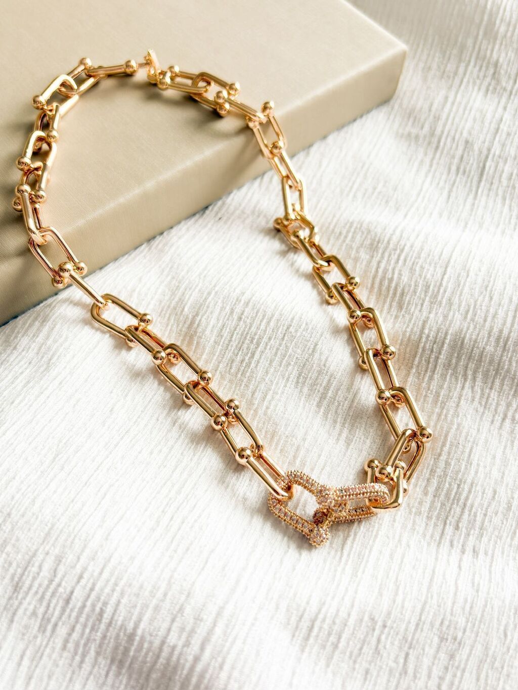 Colar Corrente com Elos Cravejados Banhado a Ouro 18k