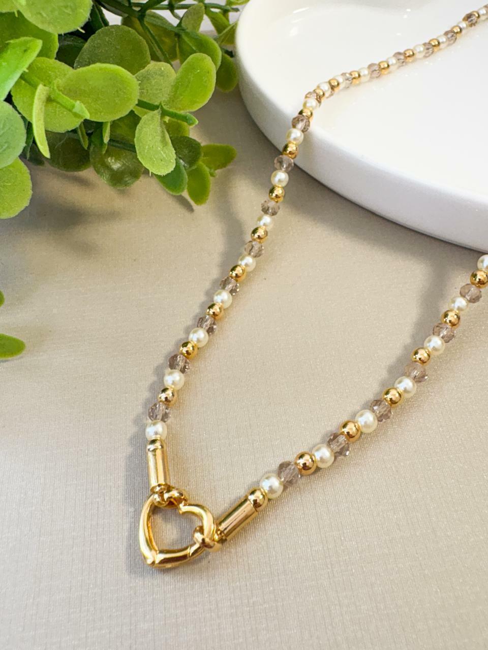 Material: Cristais e pérolas com banhado a ouro 18k em pingente e fechos com verniz protetor e acabamento de alta qualidade