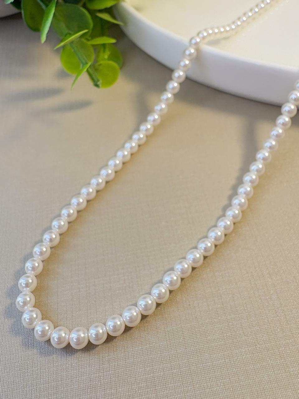 Material: Pérola shell é uma pérola artificial feita a partir da madrepérola. O fecho e o extensor são banhados a ouro 18k com verniz protetor e acabamento de alta qualidade