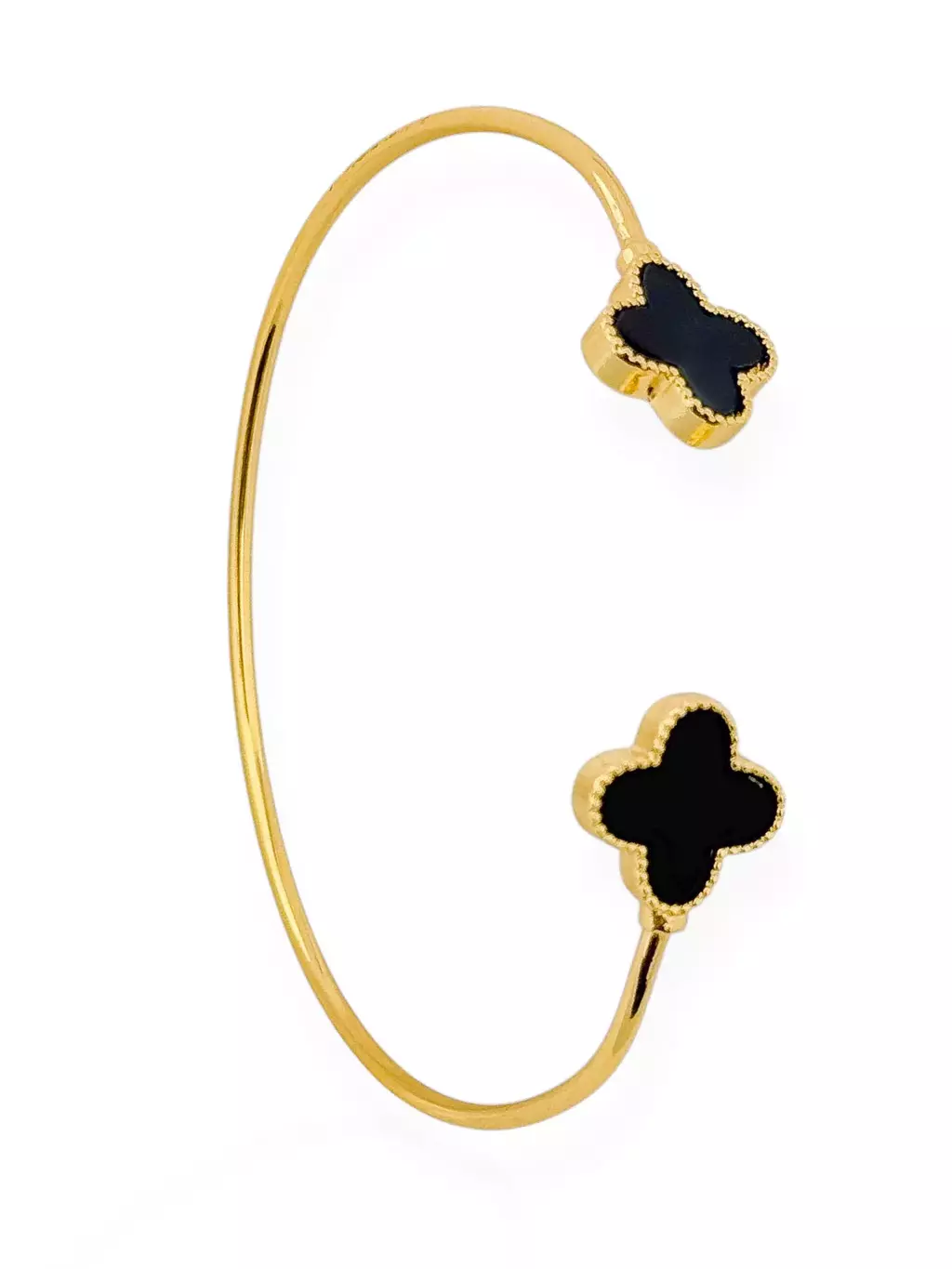 Material: Folheado a ouro 18k com verniz protetor e acabamento de alta qualidade. Trevo resinado na cor preta