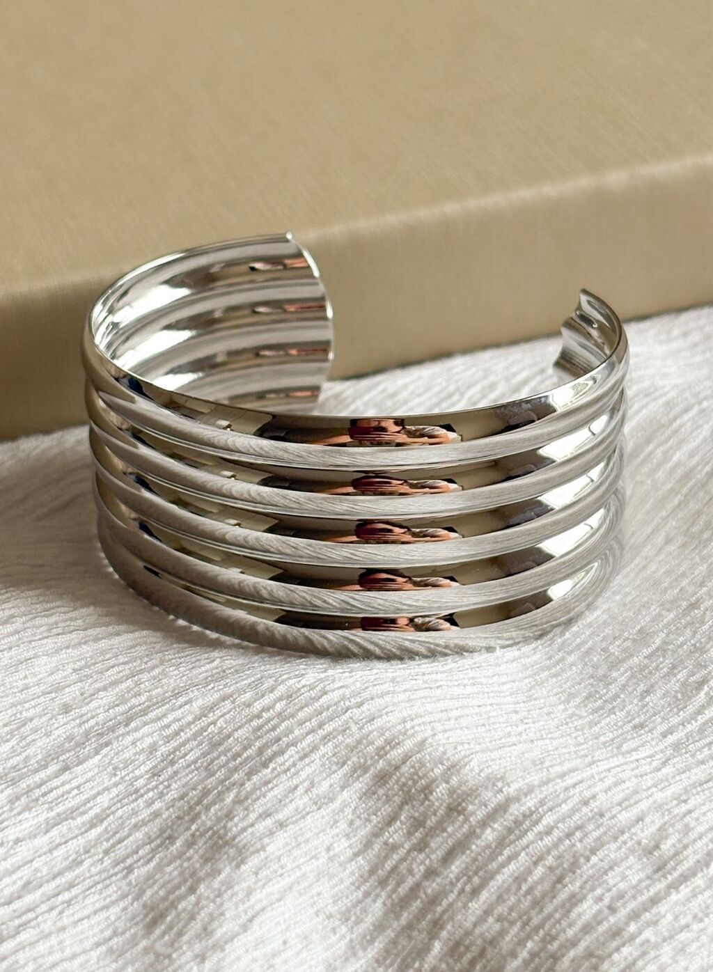 Pulseira Bracelete Ondulado Banhado a Ródio Branco